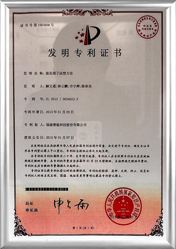 · Ha vinto il premio Excellent Patent Silver Award del China National Textile and Apparel Council