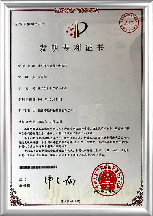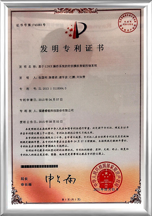 ● Riconosciuto come "Centro di ricerca e sviluppo di prodotti per sistemi di controllo intelligente del sistema di controllo intelligente delle macchine per maglieria per computer dell'industria tessile cinese".