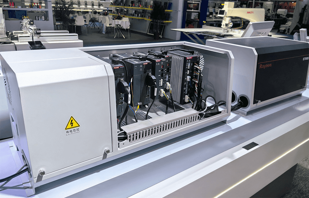 Durante la fiera, Raynen Technology ha presentato la nuova generazione di controlli elettronici per macchine da ricamo serie E7, controlli elettronici per macchine per maglieria, controlli elettronici per macchine per calze, controlli elettronici per macchine per modelli, controlli elettronici per macchine per modelli e la terza generazione di prodotti servo generali. Questi prodotti non solo riflettono il profondo accumulo di Raynen Technology nel campo del controllo delle macchine tessili, ma mostrano anche la sua continua innovazione e gli incessanti sforzi nell'intelligenza e nell'automazione.
