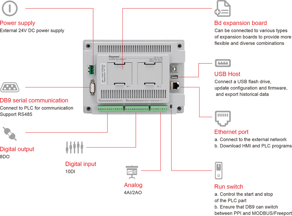 | La porta di rete può scaricare PLC e HMI programmi | Supporta il dispositivo seriale esterno | Supporta la programmazione giapponese |