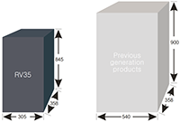 | Design raffinato Area di installazione ridotta del 50% Volume ridotto del 30% | |
