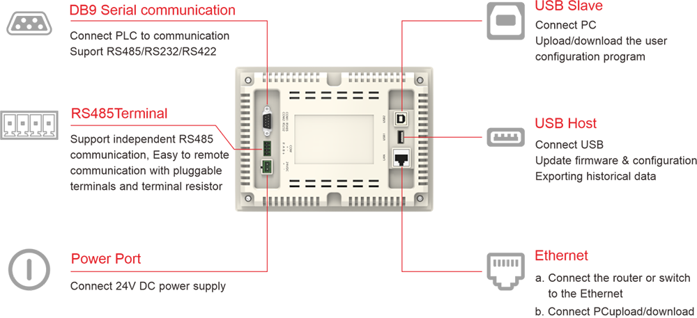 | Ospite USB | USB2.0 ×1, Tipo A (USB1), supporto USB aggiornato firmware, configurazione e dati di archiviazione | ||
