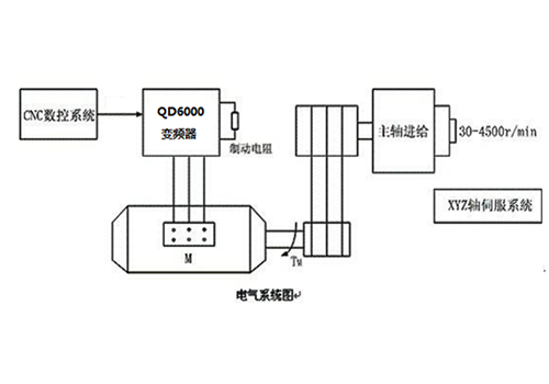 | 04 Introduzione al sistema: In questo sistema, il mandrino della macchina utensile CNC da 4KW è azionato dall'inverter RVE32 da 5,5KW e la frenatura e l'arresto rapidi vengono realizzati tramite l'unità di frenatura esterna e il resistore di frenatura. La variazione di velocità causata dalla variazione del carico è molto ridotta grazie al controllo vettoriale ad anello aperto. | | ||||||||||||||||||