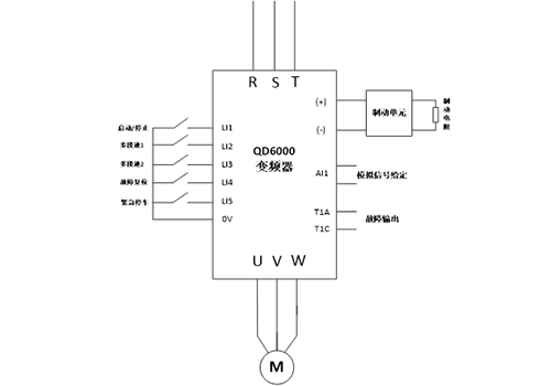 | 04 Introduzione al sistema: In questo sistema, il mandrino di un tornio verticale da 55KW è azionato da un convertitore di frequenza RVE32 da 75KW e l'arresto rapido della frenatura viene realizzato tramite un'unità di frenatura esterna e un resistore di frenatura. Il taglio a velocità costante viene ottenuto tramite il controllo vettoriale ad anello aperto e la variazione di velocità causata dalle variazioni di carico è molto ridotta. L'inverter viene avviato tramite il terminale di controllo e la velocità fornita è controllata dal segnale di tensione analogico 0-10 V del sistema di controllo. Quando il motore funziona a 70 Hz, la fluttuazione della velocità è inferiore a 1 giri/min e la fluttuazione della corrente è inferiore a 1 A, realizzando un controllo preciso della velocità. | | ||||||||||||||||||